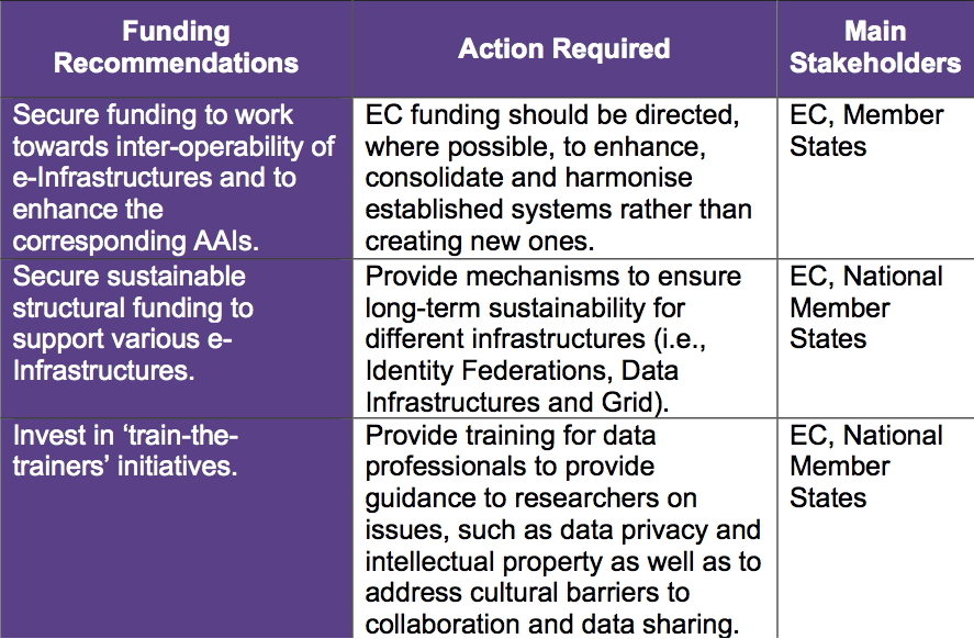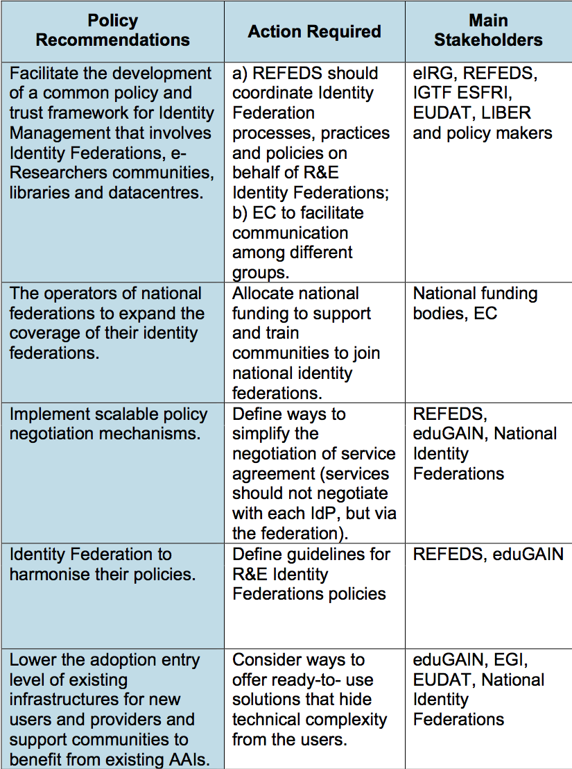 - relevant organisations such as eIRG, REFEDS (Research and Education Federations), IGTF, the EC and consortia of libraries and data centres should all work towards these goals.