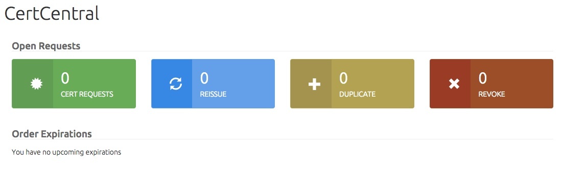 Here is where you request and approve certificates. You also see previous orders.
