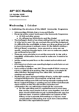 | Please review the proposals on this page: GCP structure and processes revision Current charter template: https://geant.app.box.com/s/yf3o83mfp6v1kaaggkibxjim8aqjoyax Think about how much time you want/can commit to the GCC in 2026 |